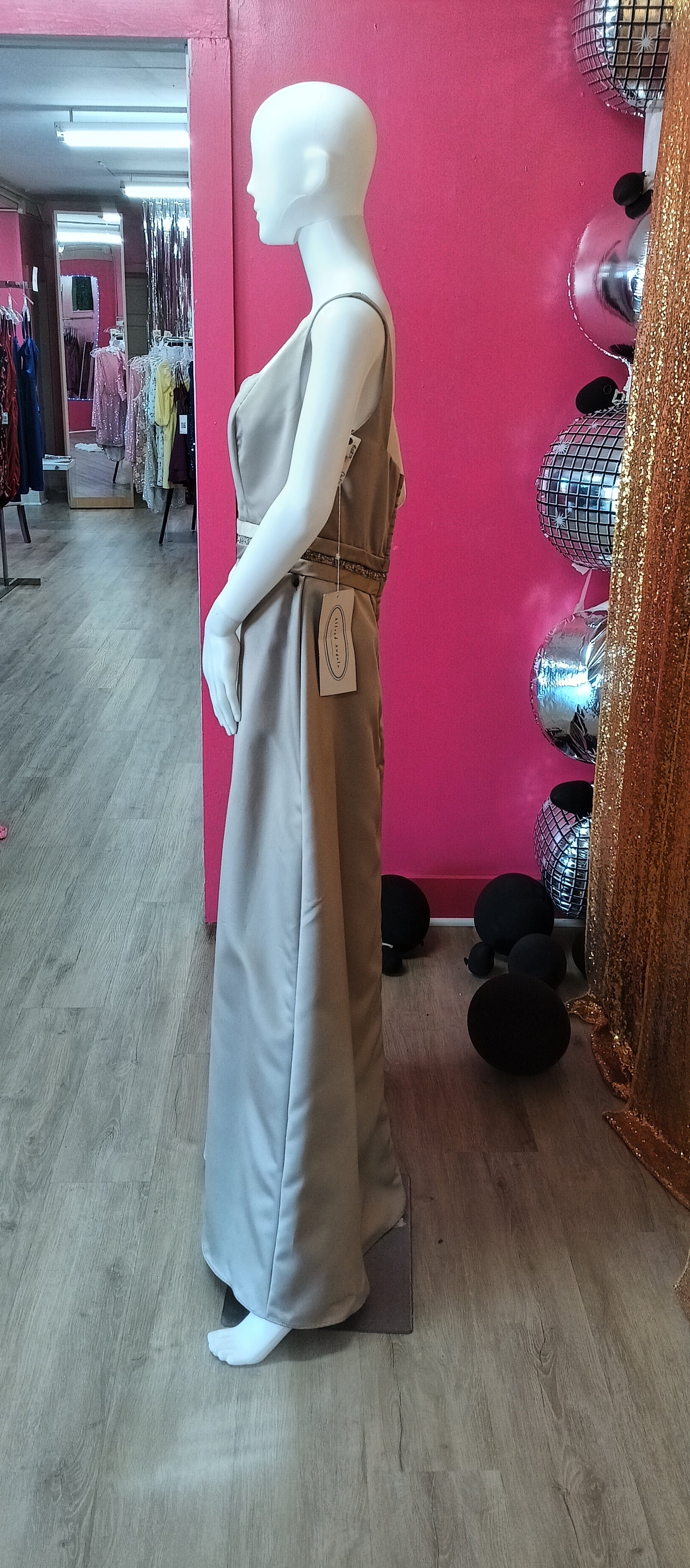 Alfred Angelo taupe satin formal dress