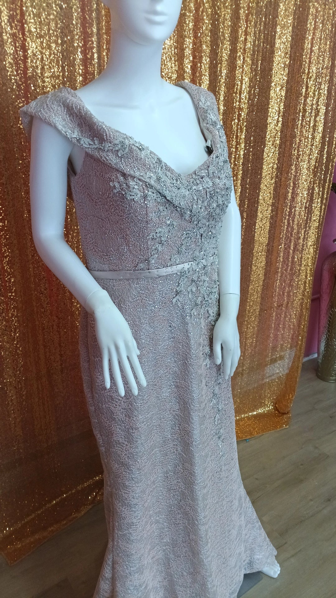 Rina dimontella rose pink off shoulder formal dress